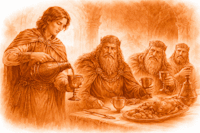 (1) Ces groupes de trois échansons forment des triades, et la répétition de la même initiale dans chaque groupe constitue une allitération mnémotechnique, facilitant la mémorisation orale des noms. Le sens combiné des trois éléments forme un concept ou un idéal. Cette triade pourrait être interprétée comme un microcosme de la génération : la naissance (Tae) comme émergence, la terre (Talom) comme matrice, et l'acte de parturition (Trog) comme passage de vie.