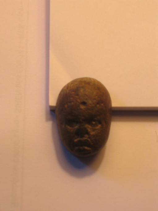 Le premier objet paraît de type africain ?! Quand au second au visage comme jeté en arrière, sourcils proéminents épousant le contour des yeux en amande, nez fort triangulaire, bouche horizontale ..., quelque chose d'un petit air de famille ressemblant avec la Vénus de la stèle du Fin Renard à Bourges ? :