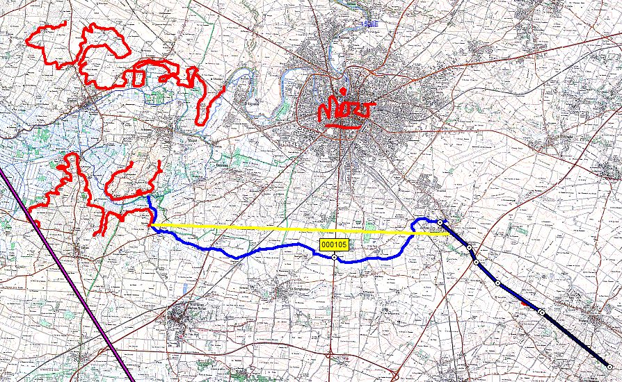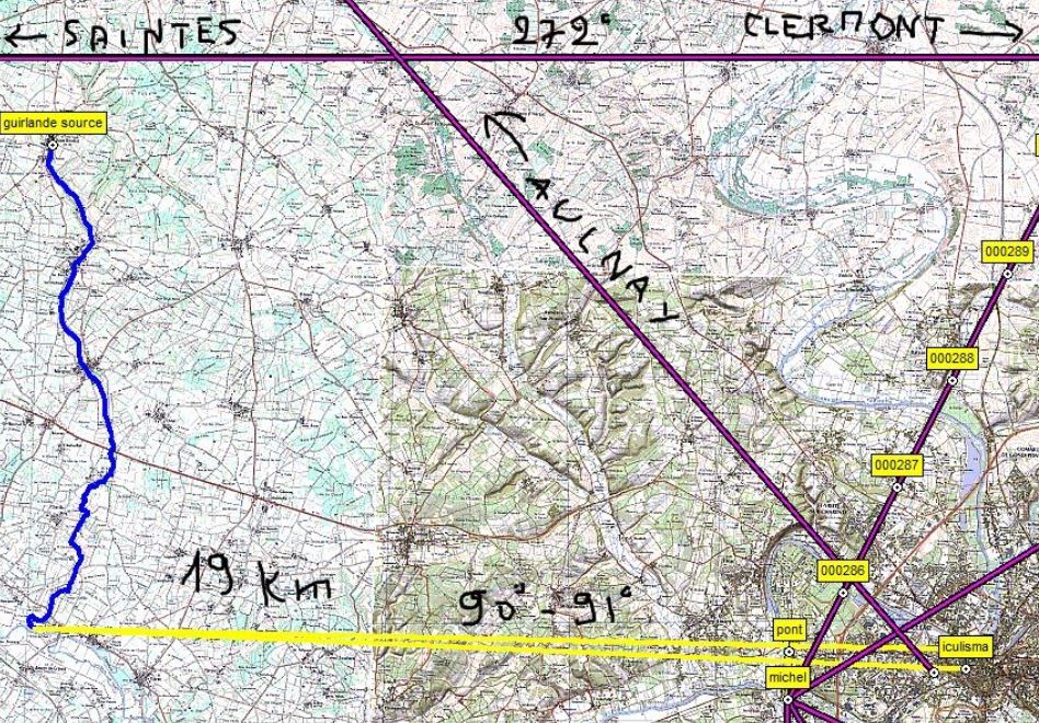 Re: mediolanum, equoranda, icoranda, mediorandaLa Guirande au sud de Niort. Affluent de la Sèvre Niortaise (la Vieille Sèvre). Cours inférieur orienté est-ouest (ligne jaune de 10,6km). *icoranda limite de pagus (de cité?) entre Pictons et Santons (pagus de l'Aunis?) ?