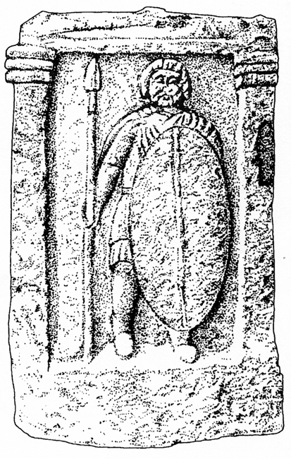 Ca y est, j'ai fini par trouver un dessin de la stèle funéraire de Galate du royaume du Pont. La source: Mariusz Mielczarek, The Army of the Bosporan Kingdom, 1999, Lodz, Oficyna Naukowa MS, planche X. La stèle provient de Akhtanizovka. Elle est datée de la fin du IIe-début Ier siècle av. J.-C. A+ Patrice Pi d'avri vaut fout' d'berbis