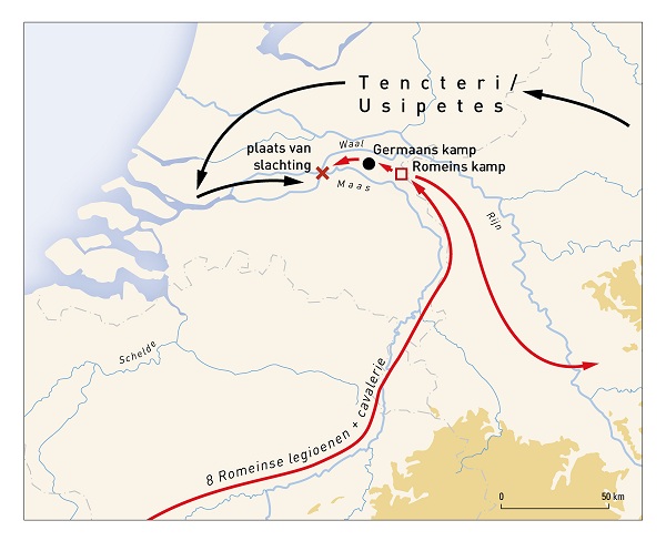 Le 11 décembre dernier, l’archéologue Nico Royman (Vrije Universiteit Amsterdam) a annoncé l'identification d'un site qui pourrait correspondre au champs de bataille au niveau duquel César aurait vaincu les Tenctères et Usipètes en 55 av. J.-C. (Cf. BG, IV, 13-15). Les vestiges de ces combats (armes, restes humains portant des traces de traumatismes violents,..) ont été mis au jours au niveau de deux sites voisins, localisés respectivement dans les régions de Kessel et Heerewaarden (Brabant septentrional).