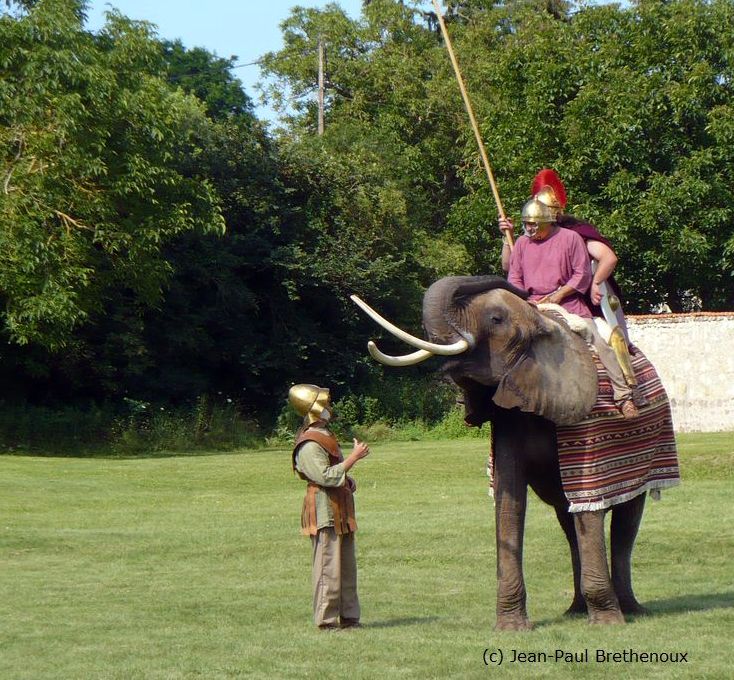 je suis allé à Drevant et j'ai vu l'éléphantSalut à tous, Je suis allé à Drevant et j’ai vu l’éléphant*. Drevant (Cher) le samedi 7 juillet 2012 pour les 7eme Derventiales. Voici des photos des troupes de reconstitution présentes sur le site gallo-romain de Drevant. - Carthago, mercenaires de Carthage. Evocation de la campagne d’Hannibal. IIIe siècle av. J.-C. « Furor elephantus » : entraînement d’un éléphant de guerre avec lancers de javelots sur cibles suivis d’une confrontation avec les fantassins. - Les Leuki et les Portes de l’histoire, groupe de mercenaires gaulois en marche dans le sud de l’Europe vers 350 av. J.-C. « Tumultus Gallicus » : spectacle de combat de fantassins contre un char de guerre, tir sur cibles. - Association Européenne de Reconstitution Antique (A.E.R.A.), Légion I Consularis République Romaine du 2e siècle av. J.-C. - Institut Historique de la Narbonnaise (I.H.N.), Légion des IIe et IIIe siècles av. J.-C. - Fer et savoir faire, forgeron de l’époque gauloise. Jean-Marc Gillet. Une très bonne journée auprès de mes collègues reconstituteurs et un grand merci à mes frères Leuki pour leur hospitalité ! http://jeanpaulbrethenoux.fr/site/2012/07/drevant-7-juillet-2012-les-7eme-derventiales/ Jean-Paul Brethenoux. Sedullos Lemouico immi exobnos in catue ! ΣΕΔΟΥΛΛΟΣ (Graecum est, non legitur !)