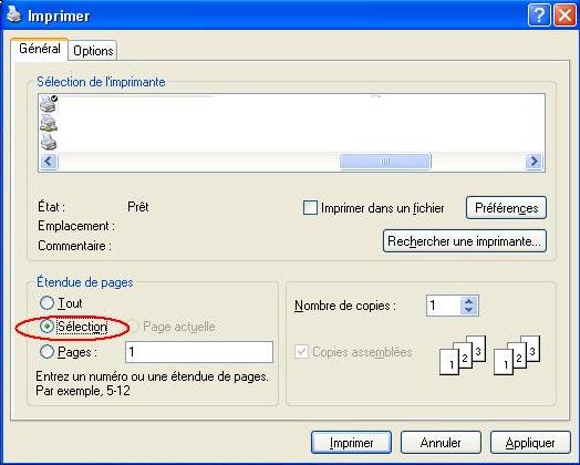 Simple, Tu sélectionnes le texte à imprimer par un coup de lasso avec la souris et suffit ensuite de dire que tu souhaites imprimer que la sélection @+Pierre Pierre Crombet