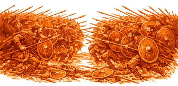 Après cela, la bataille tourna contre les Fir Ol nEgmacht en raison de la violence de l’assaut et du carnage, et chacun se lança alors dans la poursuite du combat. Amergin poursuivit les deux Eithiar, fils de Fergus fils de Roích, jusqu’à ce qu’ils s’entre-tuent à Imlech Ai. Après quoi les Fir Ol nEgmacht dressèrent un mur rouge contre les Ulates, car les Ulates ne poursuivaient jamais un massacre dès qu’un mur était dressé contre eux.