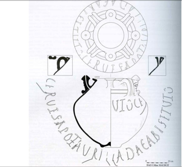 Rien de sexuel, la finale en -uto -utu est une marque de l'impératif Le problème est peut-être dans la découpe. Avec la bière je m'attendrais plutôt au verbe "prendre" que "être" surtout à l'impératif. Je laisserais tomber le daga pour lire un gabisetutu (avec doublement de la finale, comme déjà vu sur l'inscription du plomb du Larzac (biietutu). L'objet à quatre goulots, deux ont une forme on ne peut plus évidente. Je te ferais donc pas un dessin pour les deux autres. "A quelle (tétine?) prendras-tu ta bière" @+Pierre Pierre Crombet