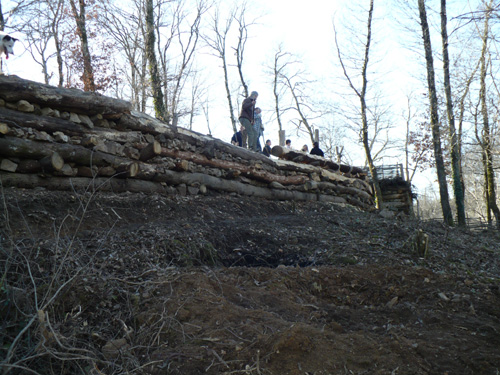 On espère finir le second rempart avant la fin avril parce qu'après la saison des sorties commence. D'ici l'été la maison-atelier du tissage devrait être bien avancée sinon complètement terminée.