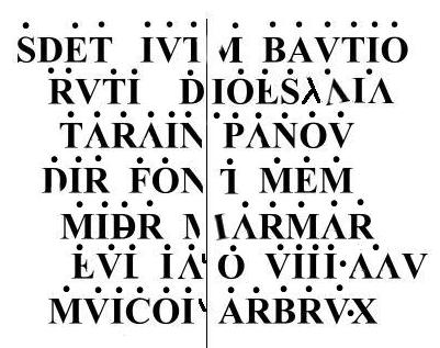- Le S de SABAVTIO est douteux à cause de la cassure de la plaque ; sinon ce sabautio me fait penser à sabaudia, nom ancien de la Savoie.