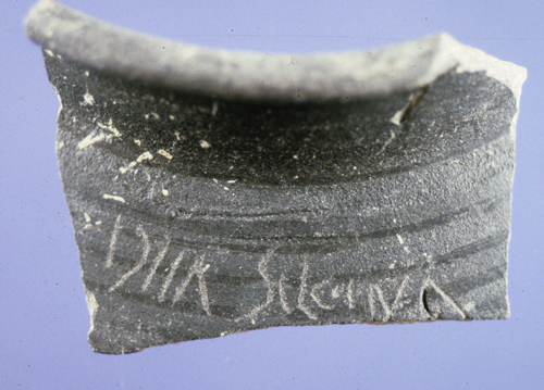 Entre autres nombreuses choses, deux tessons datables de l'époque augustéenne (associés à des fragments d'amphores italiques) montrent des graffitis incisés : DIIA SILGINA et sont toujours visibles dans le petit musée aménagé dans la propriété. Le contexte de découverte est une couche charbonneuse noyée par la nappe phréatique et des résurgences. le tout est recouvert par un amas de poutres de bois et d'éléments de tonneaux associés à un dépotoir de la fin du IIIe siècle. Un fond de coupe en céramique noire porte une marque de potier circulaire anépigraphe où la propriétaire voulait lire aussi SILGINA, ce qui relève largement de l'autosuggestion ! Enfin, de nombreuses personnes m'ont fait part de la découverte d'une planchette de bois avec la même dédicace. En fait cette plaquette, que tout le monde a vu, a été emportée par un ancien conservateur du SRA qui l'a ensuite égarée (!...). Le "hic", c'est que lui seul a vu, "après nettoyage", l'inscription en question. Comme le personnage est hélas coutumier d'affabulations en tous genres, le problème reste entier...